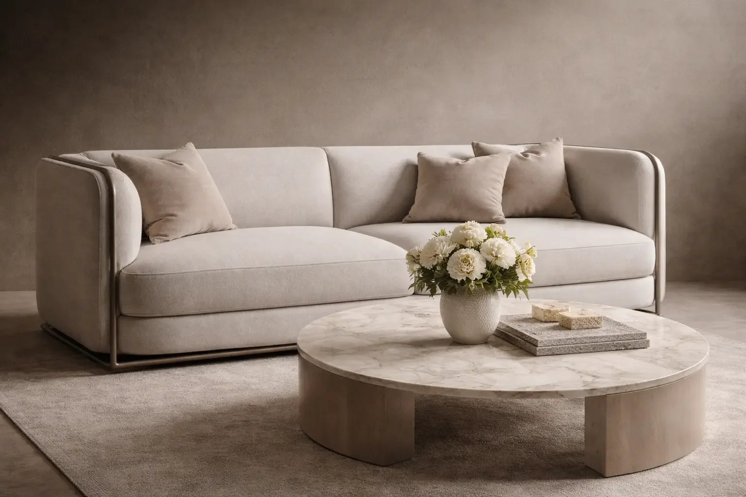 Subtle tones of this kitchen pair with most colors, hence it was easy for our client to combine it with mixed metals, patterns and textures on the rest of their furniture.